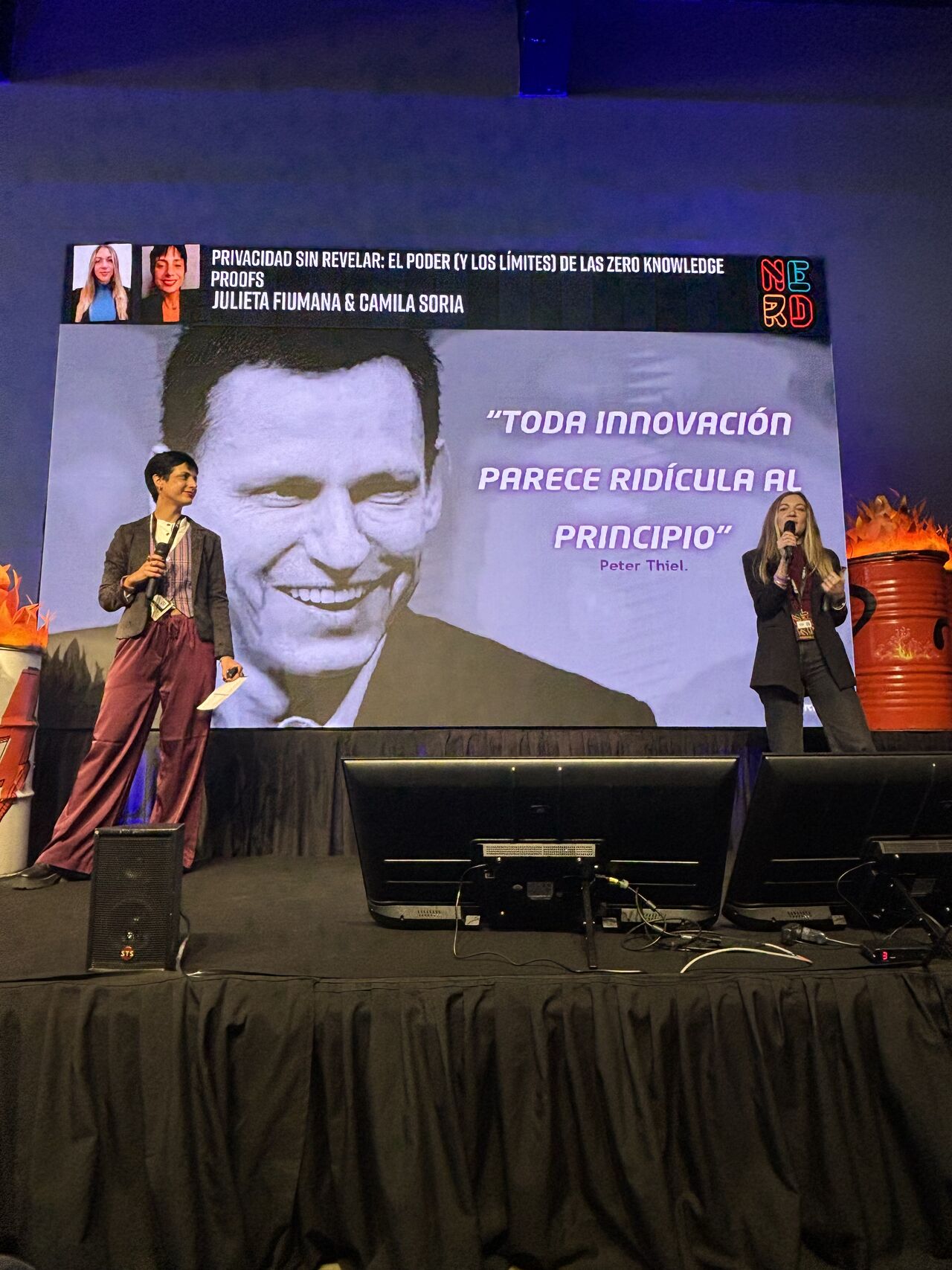 Aquí brilló el dúo: Camila Soria, con su visión en diseño legal, mostró cómo fusionar ZKPs con UX y derecho crea soluciones intuitivas. El legal design —que une leyes, diseño y tecnología— eleva las ZKPs a sistemas dinámicos: